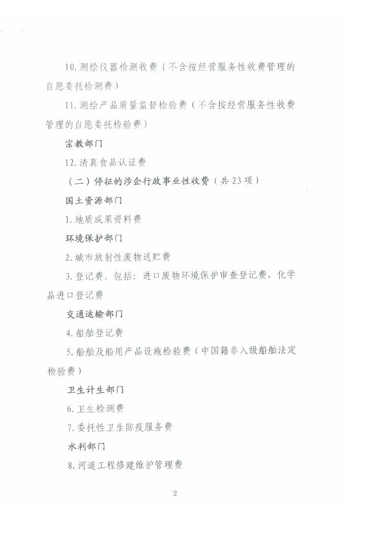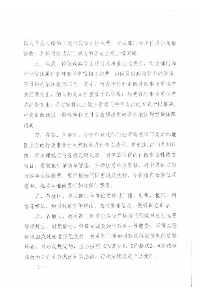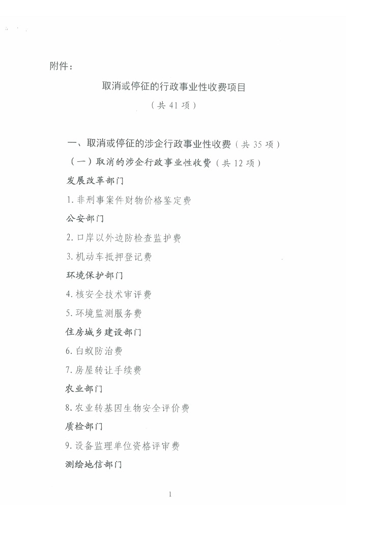 關于清理規范一批行政事業性收費有關政策的通知