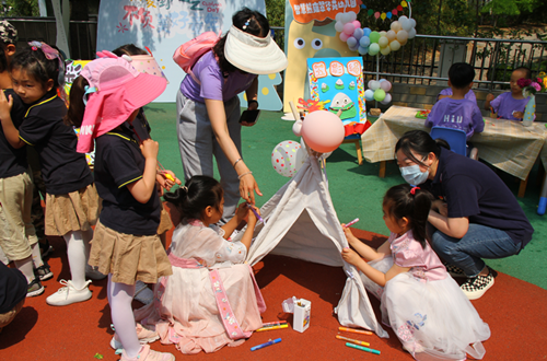 課后,為了增強孩子們的環保意識和創新意識,質檢院青年團隊還運用廢舊輪胎與幼兒園師生開展了“變廢為寶”活動。他們通過給廢舊輪胎刷油漆,將廢舊輪胎改造成“彩繪輪胎”,制成“輪胎小魚池”,在小魚池進行“釣魚”互動游戲。孩子們在動手操作中不斷探索廢舊輪胎的利用方法,體驗到創新的樂趣,也提高了團隊協作能力。