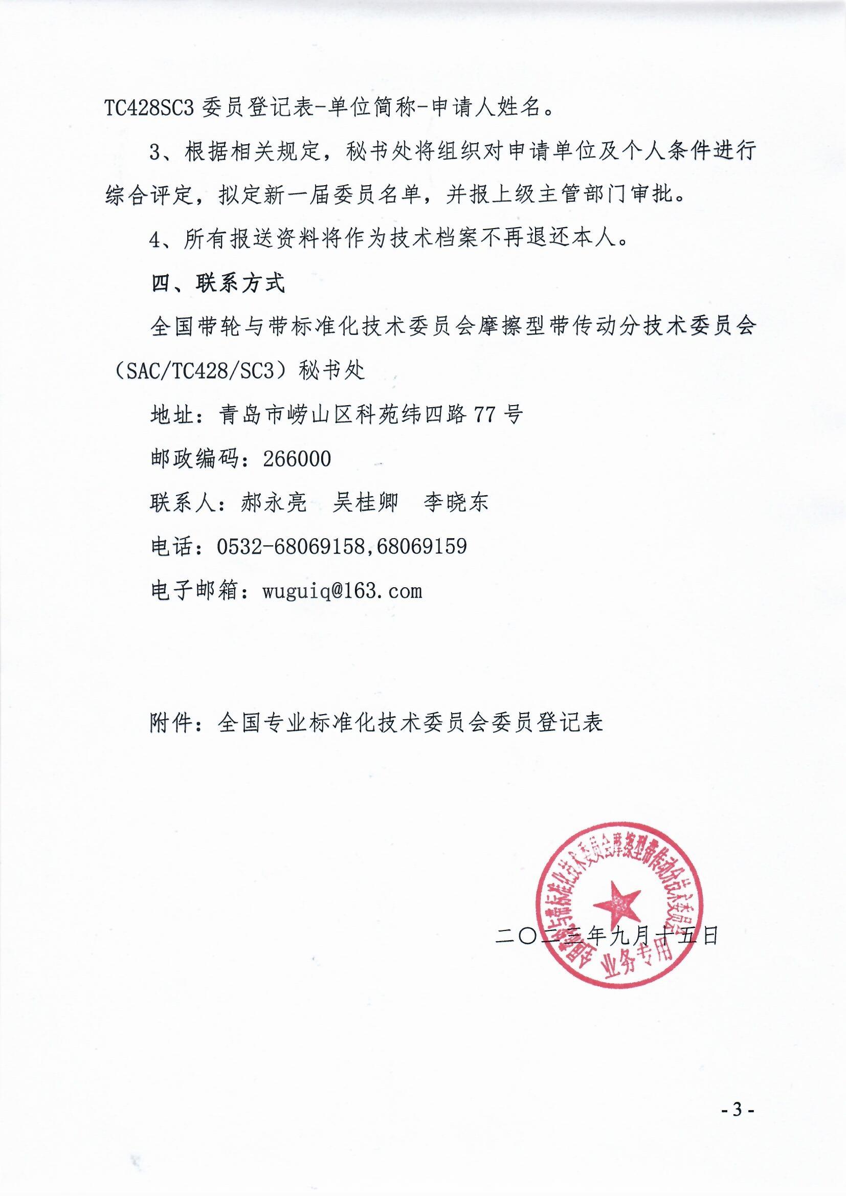 關于全國帶輪與帶標準化技術委員會摩擦型帶傳動分技術委員會換屆及征集委員的通知